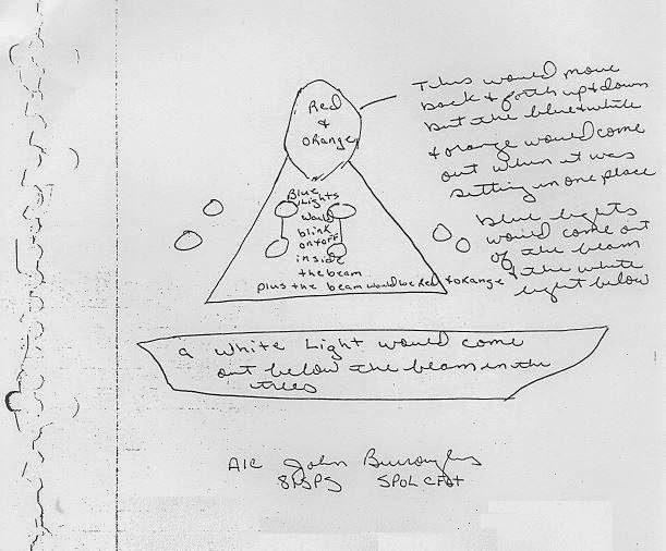 Ο Λοχίας Jim Penniston έγραψε, «Το αντικείμενο εξέπεμπε ένα κόκκινο και μπλε φώς. Το μπλε ήταν σταθερό και προεξείχε κάτω από το αντικείμενο. Ήταν σίγουρα μηχανικής φύσεως ».