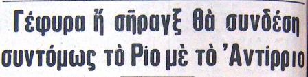 Βραδυνή 18.2.1965. Δεν θα το χαλάσουμε τώρα για το αν είναι γέφυρα ή σήραγγα. Σημασία έχει το «συντόμως»
