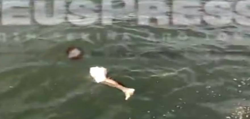 Αναρτήθηκε και φριχτό για τα ελληνικά δεδομένα βίντεο στο Piraeuspress.gr, το οποίο δείχνει το πόδι του ακρωτηριασμένου πτώματος του άνδρα, που βρέθηκε να επιπλέει στο λιμάνι του Πειραιά.