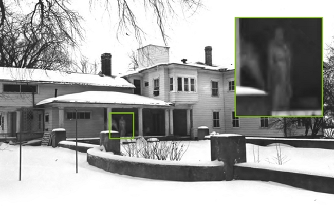 Στη φωτογραφία που εντόπισε η γυναίκα στα αρχεία και τραβήχθηκε το 1976 από τον Charles W. Nelson, μια φιγούρα φαίνεται να στέκεται στη βεράντα του σπιτιού.