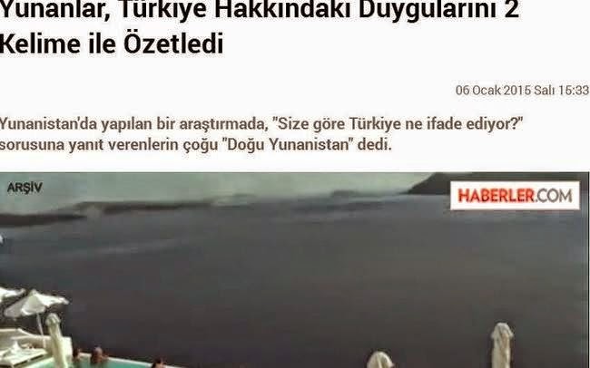 Οι Έλληνες πολίτες ωστόσο, κατά συντριπτική πλειοψηφία των ερωτηθέντων, στην έρευνα που διεξήχθη στην Ελλάδα, διατύπωσαν τη θέση ότι: Τουρκία σημαίνει Ανατολική Ελλάδα (DoğuYunanistan), «η οποία έχει δανεισθεί, προσωρινά, στους Τούρκους», ήταν η απάντηση.