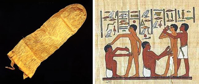 Ω ναι, είναι και πάλι οι αρχαίοι Αιγύπτιοι που πρέπει να ευχαριστούμε για το ασφαλές σεξ! Ζωγραφική παράσταση που χρονολογείται από το 1350 π.Χ. παρουσιάζει άντρες που φορούν μια ειδική θήκη στα απόκρυφά τους, με τον ίδιο τρόπο που εφαρμόζονται τα σύγχρονα καουτσουκένια προφυλακτικά. Αν και η χρήση τους δεν ήταν τόσο για ασφαλές σεξ όσο για την υγιεινή των ανδρικών οργάνων: το υλικό προστάτευε την επίμαχη περιοχή από μολυσματικές ασθένειες, την ίδια στιγμή που είχε και μια σαφώς πιο πρακτική χρήση, να σταματά δηλαδή τα έντομα από το εισβάλουν εκεί κάτω! Οι αρχαιολόγοι υποθέτουν ότι η χρήση του προφυλακτικού πρέπει να είχε και άλλες λειτουργίες, όπως ας πούμε ότι ήταν μέρος τελετουργικού ή σύμβολο ανώτερης κοινωνικής τάξης, αν και δεν υπάρχουν μέχρι στιγμής αποδείξεις που να το υποστηρίζουν αυτό. Παρά ταύτα, ο σχεδιασμός και η καινοτομία στη χρήση των προφυλακτικών θυμίζει πολύ τα σημερινά προφυλακτικά, έστω κι αν η λειτουργία τους δεν ήταν η αντισύλληψη…