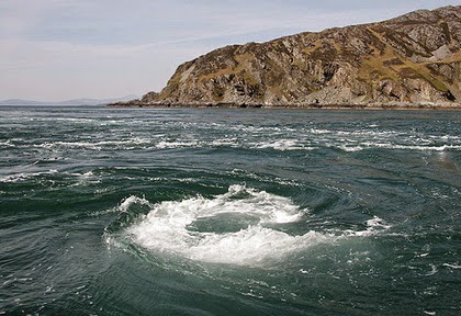Η τρίτη μεγαλύτερη δίνη του κόσμου βρίσκεται στο σχετικά στενό πορθμό του Corryvreckan. Ακραία παλιρροϊκά ρεύματα δημιουργούν δίνες και αυτό οφείλεται εν μέρει στη θέση του ανάμεσα σε δύο νησιά στα ανοικτά της δυτικής ακτής της Σκωτίας και στον πυραμιδικό βράχο στο βυθό της θάλασσας. Κύματα ύψους 10 μέτρων υψώνονται και σκάνε έως και 16 χιλιόμετρα μακριά. Στα πλαίσια πειραμάτων, Σκωτσέζοι ερευνητές πέταξαν μία πλαστική κούκλα με σωσίβιο στη ρουφήχτρα του Corryvreckan. Η κούκλα βυθίστηκε αμέσως στην επικίνδυνη δίνη και όταν βρέθηκε αργότερα πεταμένη πιο μακριά είχε εμφανή σημάδια ότι ξύστηκε στο βυθό της θάλασσας.
