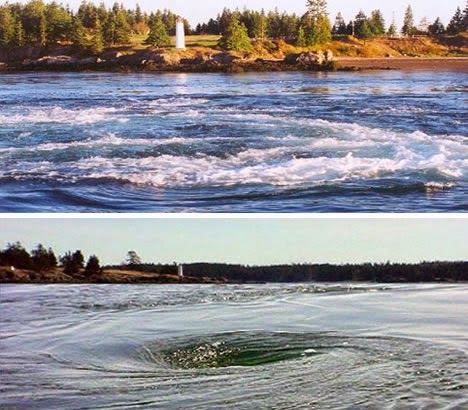 Το νερό δίνει ζωή, αλλά μπορεί επίσης να την αφαιρέσει εξαιρετικά βίαια. Ενα χαρακτηριστικό παράδειγμα της επικίνδυνης πλευράς της θάλασσας είναι οι ρουφήχτρες, που ανέκαθεν απέπνεαν τρόμο στους ναυτικούς, κερδίζοντας επάξια μία θέση ανάμεσα στα δεινά του Οδυσσέα στο Ομηρικό έπος.Πολύ μικρές δίνες μπορεί να δει κανείς αδειάζοντας τον νεροχύτη ή τη μπανιέρα του. Στον ωκεανό, ανάλογα με τη γεωλογία του πυθμένα της θάλασσας, δημιουργούνται ρεύματα που μπορεί να συγκρουστούν και να δημιουργήσουν αντικρουόμενα παλιρροιακά ρεύματα. Το νερό γυρίζει αριστερόστροφα βόρεια του ισημερινού και δεξιόστροφα νότια του ισημερινού. Η καταστροφική αλληλεπίδραση αποτελεί ένα «τζακούζι», ένα ισχυρό κυκλικό ρεύμα νερού που σταδιακά δημιουργεί φονικές ρουφήχτρες.