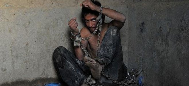 «Είχα έναν μεγάλο καβγά με τον πατέρα μου», λέει ο Μοχάμεντ στο AFP. Ο αδύνατος νεαρός άνδρας κάθεται σε μία βρώμικη κουβέρτα, με βαριές αλυσίδες γύρω από τους αστραγάλους και τους καρπούς του. «Του έκλεψα χρήματα για να αγοράσω μία μηχανή. Είμαι πολύ δυστυχισμένος και θυμωμένος μαζί του που με έβαλε εδώ μέσα», προσθέτει.