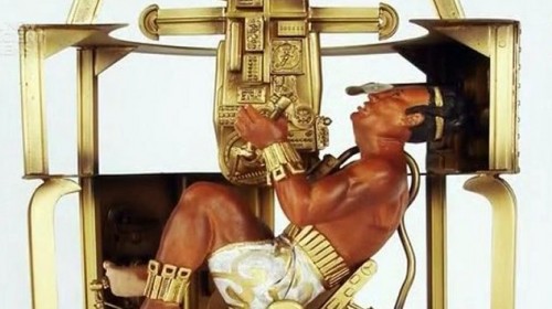 Ενδιαφέρον το τρισδιάστατο μοντέλο που κατασκεύασαν για να αποδώσουν τα σχέδια που υπάρχουν πάνω στη σαρκοφάγο του βασιλιά Πακάλ, ο οποίος απεικονίζεται καθισμένος στα χειριστήρια διαστημικού σκάφους(;).
