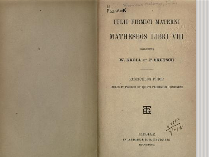 Έτσι ο Ιούλιος Φιρμικος Ματέρνος παρακινήθηκε να καλύψει το κενό συγγράφοντας το προαναφερθέν έργο.