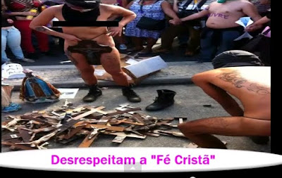 Άλλες εικόνες από τις παρελάσεις που εμφανίζονται στη σελίδα του Facebookενός Βραζιλιάνου γερουσιαστή δείχνουν και άλλες περιπτώσεις βεβήλωσης των χριστιανικών συμβόλων. Μία φωτογραφία δείχνει δύο γυμνές ομοφυλόφιλες σε ένα σταυρό να φιλιούνται. Μια άλλη δείχνει δύο άτομα που φαίνεται να είναι ένας άνδρας και μια γυναίκα που κάθονται γυμνοί στην κορυφή των πασσάλων του Εσταυρωμένου, με εικόνες να καλύπτουν τα γεννητικά όργανά τους.
