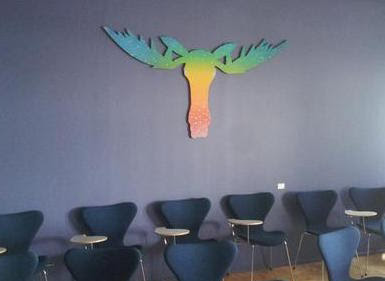Το νέο «έργο τέχνης» δείχνει ένα κεφάλι άλκης (τύπος ελαφιού) στα χρώματα του ουράνιου τόξου