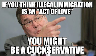 Ο όρος “cuckservative” χαρακτηρίζει τους λευκούς συντηρητικούς που όχι μόνο δεν αντιδρούν στην μαζική μετανάστευση, αλλά την θεωρούν «πράξη αγάπης», και μένουν απαθείς μπροστά στον αργό θάνατο της Λευκής Αμερικής και την αλλοίωση του εκλογικού σώματος. Ενίοτε μοιάζουν να το«απολαμβάνουν» κιόλας.
