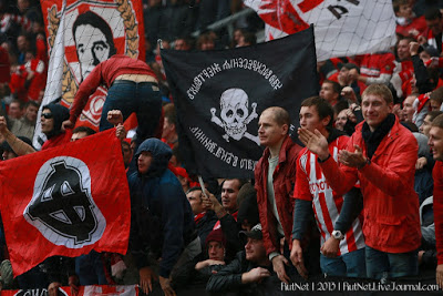 Φωτο: Οκτώβριος 2014: Κάποιοι οπαδοί της Λέφσκι Σόφιας δεν σέβονται τους αγώνες της UEFA «κατά του ρατσισμού». Για αυτήν τους την βλασφημία η Λέφσκι έφαγε πρόστιμο.