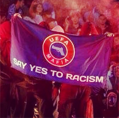Ουδείς εκ των «αντιρατσιστών» – «αντιφασιστών», που παρουσιάζονται με προφίλ αντισυστημικό και που συνεχώς καταφέρονται κατά της UEFA χαρακτηρίζοντάς την ΜΑΦΙΑ (“UEFA MAFIA” το σλόγκαν), δεν ψυλλιάζεται και δεν αναρωτιέται γιατί άραγε οι «πλανητικοί μαφιόζοι του ποδοσφαίρου» αποφάσισαν να βρεθούν στην πρωτοπορία του «αντιρατσισμού» και να οργανώνουν φιέστες «αντιρατσιστικού» θεάματος», συνεχίζει το ΡΕΣΑΛΤΟ.