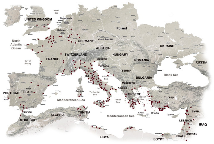 Δείτε  τοποθεσίες καθώς και τις φωτογραφίες όλων των ελληνικών αλλά και ρωμαίικών θεάτρων στην Ευρώπη. Πατήστε στην περιοχή που σας ενδιαφέρει και θα δείτε φωτογραφίες του θεάτρου και πληροφορίες σχετικές με αυτό