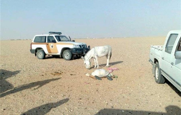 Η αστυνομία εντόπισε δεμένο το γάιδαρο και το σώμα του δράστη κοντά στο αυτοκίνητο στην αποκαλυπτική στάση που βλέπετε, του ξεραμένου ισλαμιστή.