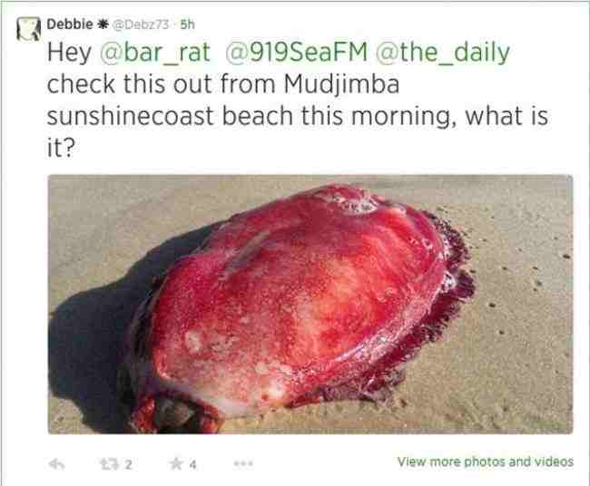 Η κόκκινη μάζα, είναι ασπόνδυλη, δεν διαθέτει άκρα, και δεν φαίνεται να έχει μάτια ή στόμα. Η Daily Mail σημειώνει η Debbie Higgs, που το βρήκε ξεβρασμένο στην παραλία, το τύλιξε σε μια πετσέτα και το πήρε σπίτι της όπου το τοποθέτησε σε αλμυρό νερό.