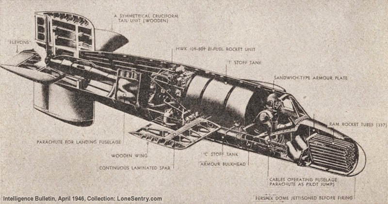 Τώρα ο χειριστής θα άρχιζε να ανεμοπορεί με πορεία προς τον εχθρικό σχηματισμό. Το αεροσκάφους μπορούσε επίσης να φέρει 33 ρουκέτες R-4 Μ, ή 24 ρουκέτες Fohn των 75 χλστ., ή δύο πυροβόλα των 30 χλστ. με 30 βλήματα ανά όπλο.